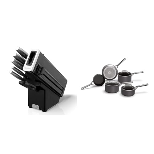 Ninja StaySharp Knife Set, Stainless Steel 6-Piece Knife Set with Integrated Sharpener, Chef Knife & ZEROSTICK Premium 5-Piece Pan Set, Long Lasting Non-Stick, 3X Saucepans with Glass Lids