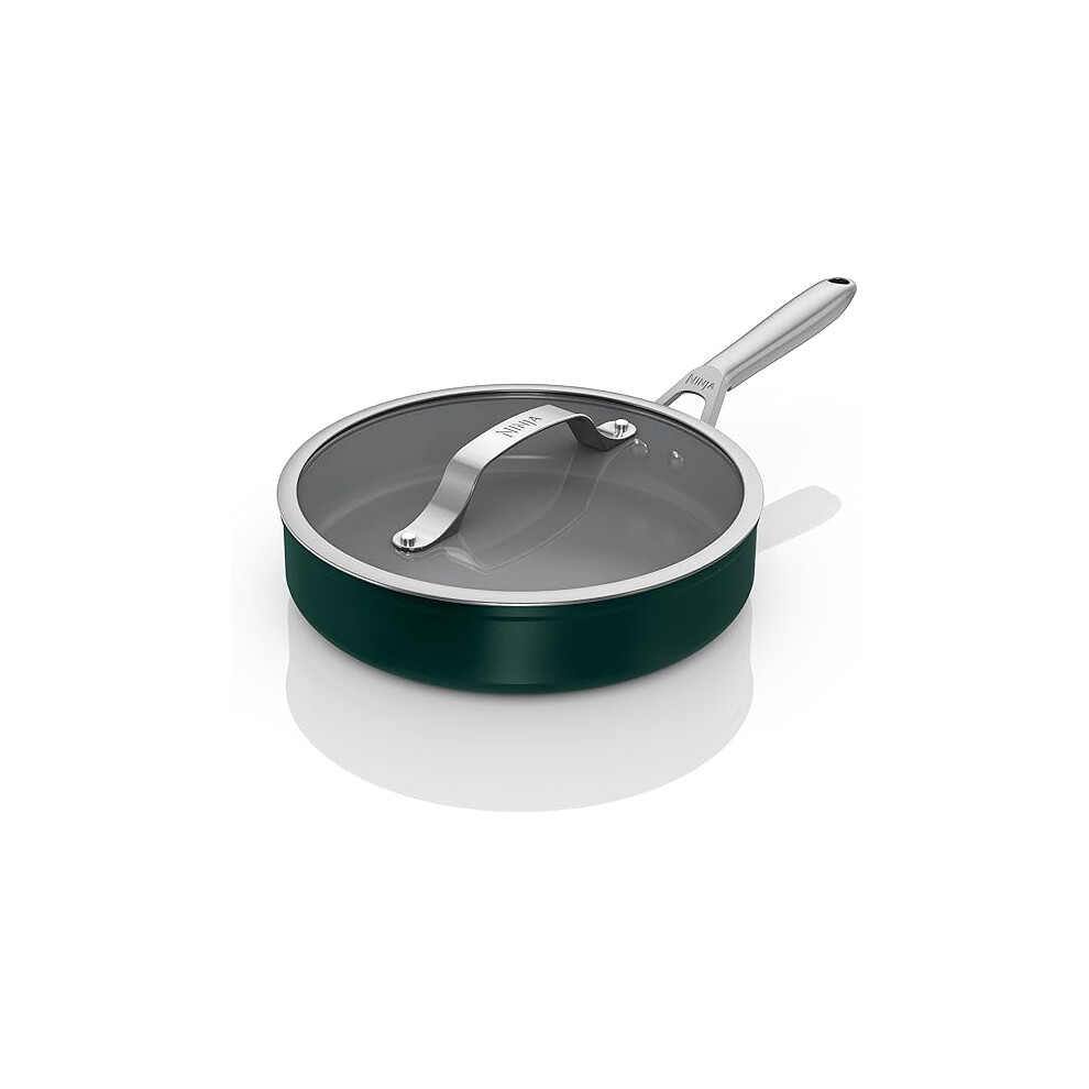 Ninja ZEROSTICK Ceramic Pro 26 cm Sauté Pan with Glass Lid, Scratch Resistant, Made PTFE-Free, All Hob Compatible, Green