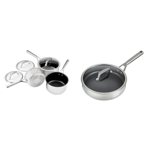 Ninja ZEROSTICK Stainless Steel Cookware 3-Piece Saucepan Set & ZEROSTICK Stainless Steel Cookware 26cm Sauté Pan with Glass Lid, Long Lasting, Non-Stick
