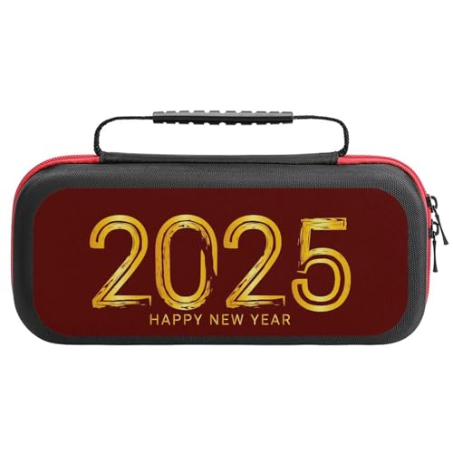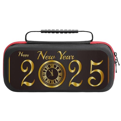 Compatible with Nintendo Switch Case, Happy New Year 2025 D Travel Carry Case Compatible with Switch Lite/Oled Console Case, Protective Case with Pockets for Accessories & Games