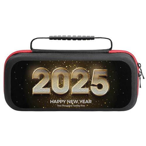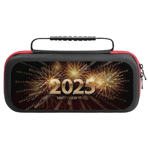 Compatible with Nintendo Switch Case, 2025 Happy New Year 2 Travel Carry Case Compatible with Switch Lite/Oled Console Case, Protective Case with Pockets for Accessories & Games