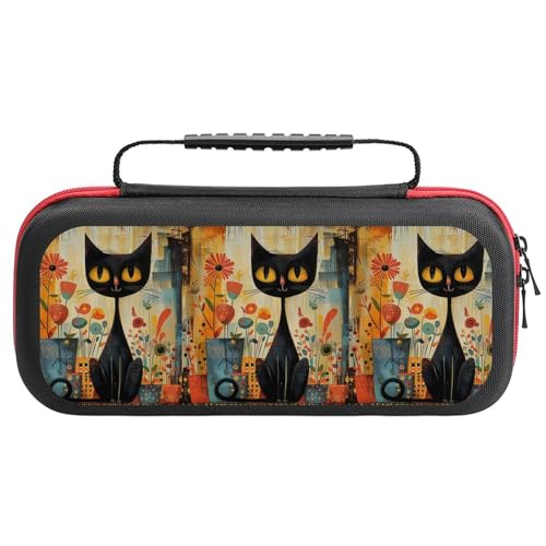 Compatible with Nintendo Switch Case, Retro Black Cat Flowers Protective Travel Carry Case Compatible with Switch Lite/Oled Console Case with Pockets for Accessories And Games