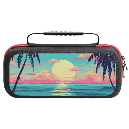 Compatible with Nintendo Switch Case, Retro Palm Beach Sunset Travel Carry Case Compatible with Switch Lite/Oled Console Case, Protective Case with Pockets for Accessories & Games