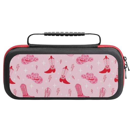 Compatible with Nintendo Switch Case, Retro Pink Cowgirl Boots Hat Travel Carry Case Compatible with Switch Lite/Oled Console Case, Protective Case with Pockets for Accessories & Games