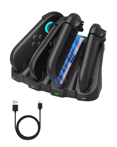 OFFCUP Joy Con Charging Grip Handle for Nintendo Switch/OLED, Joystick Charging Comfort V-Shaped Game Grip Controller with Battery Indicators, High Speed for Joy-Con Charger Grip USB Type-C Cable