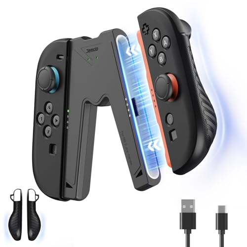JEMDO Ergonomic Joy Con Charging Grip for Nintendo Switch 2, Magnetic Charger with USB-C Cable & LED Indicator, Comfortable Anti-Slip Textured Grip, Reinforced Back Support, Travel-Ready, Black