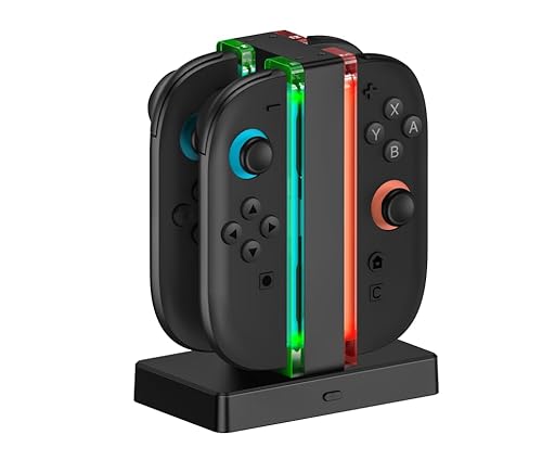 CHARM FOCUS Charging Dock for 2025 Nintendo Switch 2 JoyCon, 4-Port Magnetic Controller Fast Charger Stand, LED Indicators & Overcharge Protection, for Switch 2 Joy Con Accessories, with Charge Cable