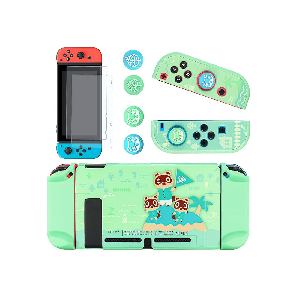 Animal Crossing Themed Accessories for Nintendo Switch with Dockable Cover Carrying Case Screen Guards Game Card Storage and Leaf-Shaped Thumb Grips