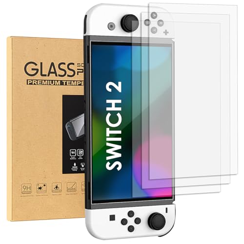 3 Pcs Tempered Glass Screen Protector Compatible with Nintendo Switch 2 Model 2025, 7.9" 9H Glass Film with Bubble-Free Easy Install, Ultra HD Clarity, Scratch Resistant, for Daily Use and Travel