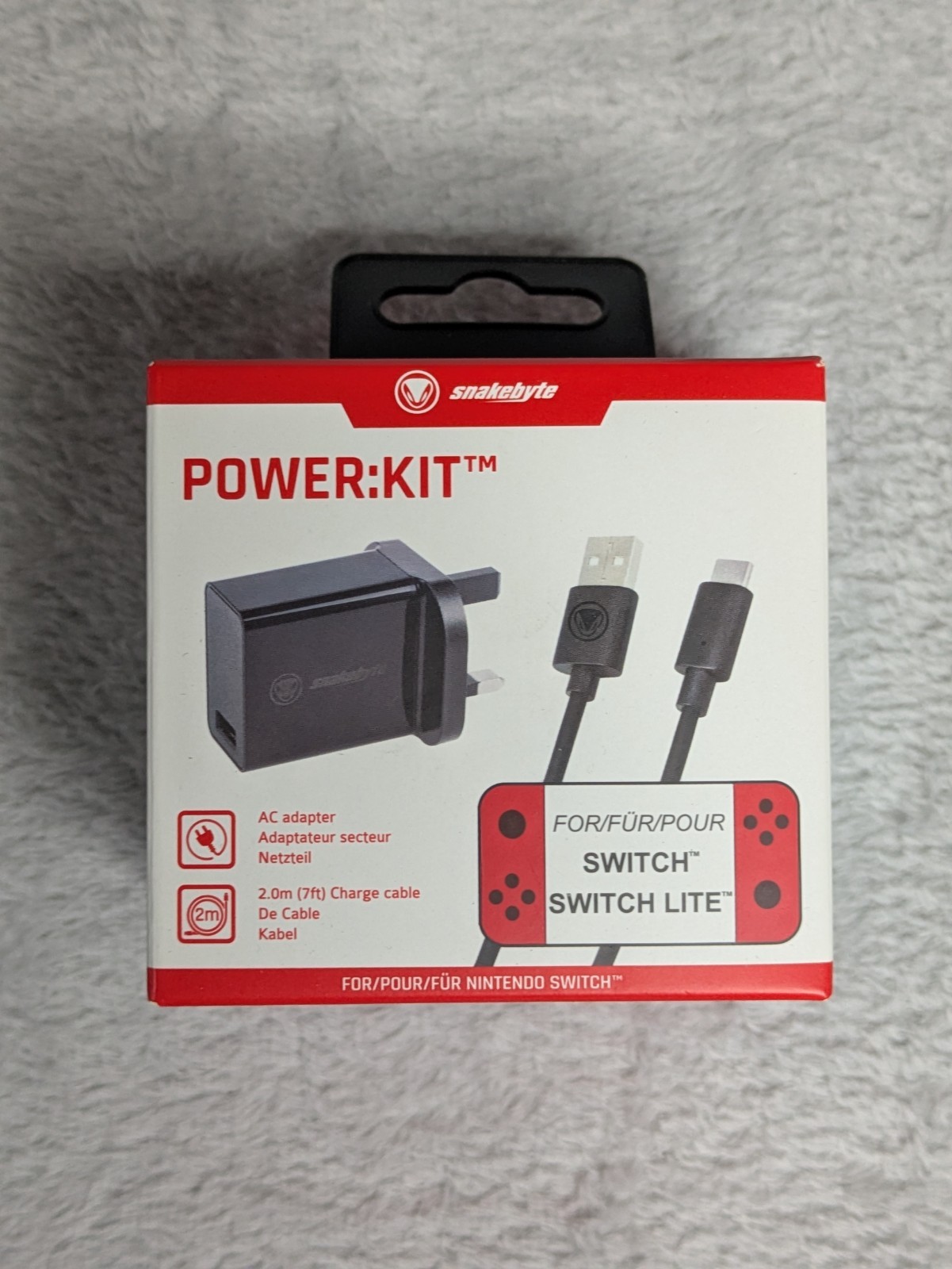Snakebyte POWER:KIT Nintendo Switch Charger USB-C 2m Cable UK Plug New