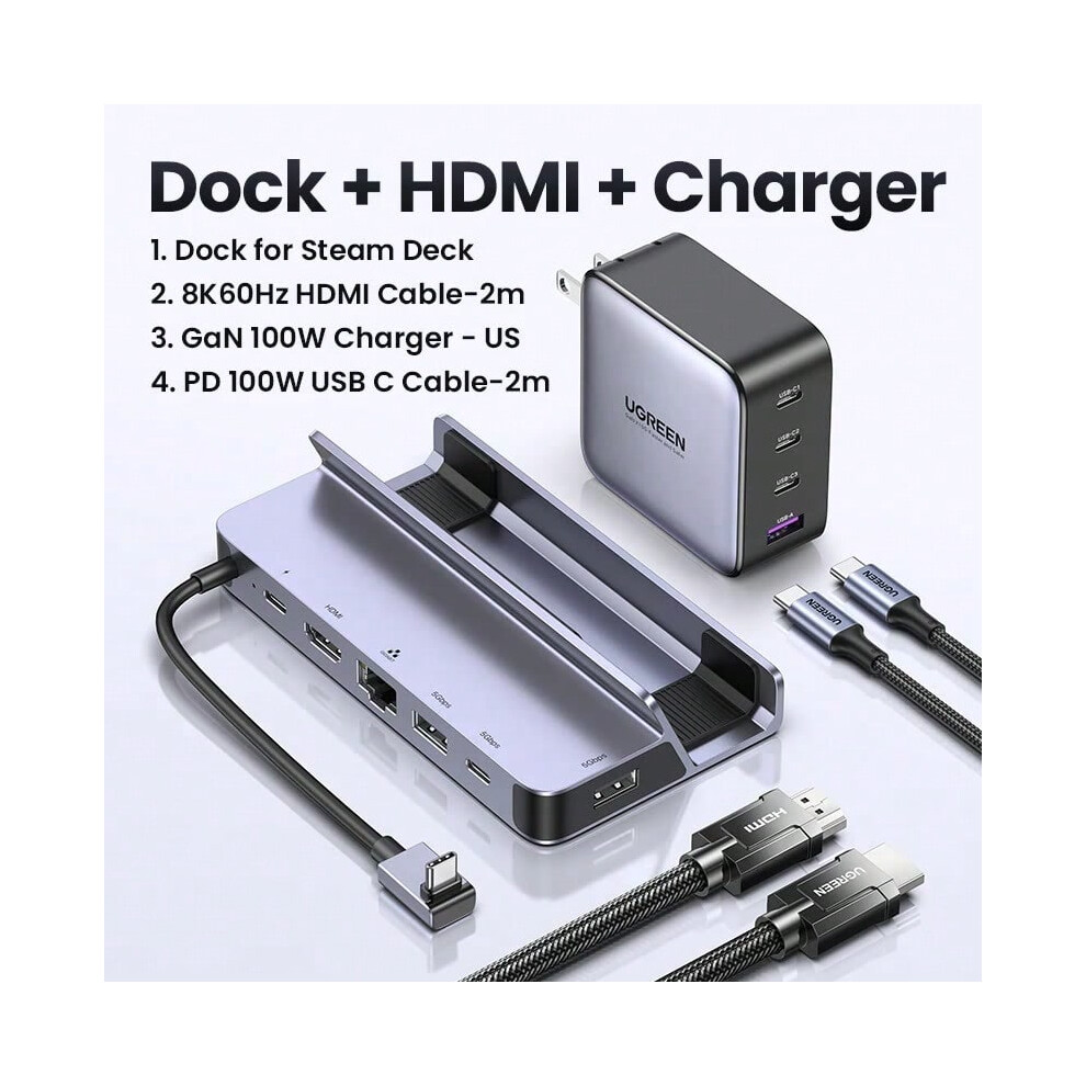 (6in1-HDMI-Charger US) UGREEN USB C Docking Station for Steam Deck to HDMI 4K60Hz RJ45 PD100W Dock for Asus ROG Ally Nintendo Switch MacBook PC USB HU