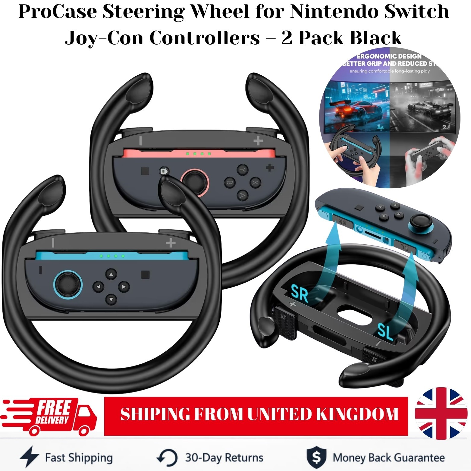 ProCase Steering Wheel for Nintendo Switch Joy-Con Controllers 2 Pack Black