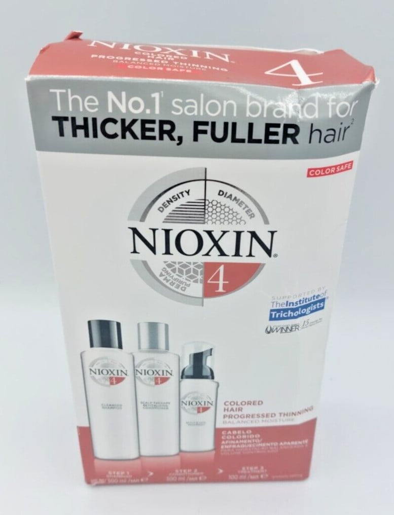 Nioxin SYSTEM-4 Coloured,-visibly-thinning-hairColoured Hair Progressed Thinning3-step system set Scalp + Hair Shampoo 150 ml + Scalp + Hair Conditioner 150 ml + Scalp Care + Hair Thickening Treatment 40 ml 340 ml (£107.94 / 1 l)
