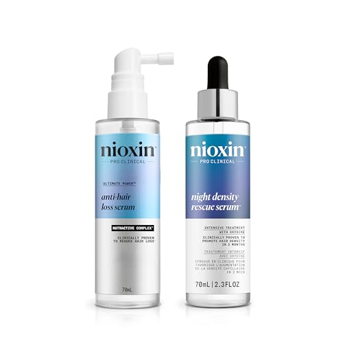Nioxin Hair Growth & Thickening Bundle – Night Density Rescue Serum & Anti-Hair Loss Leave-On Scalp Treatment with Ginger, Caffeine & Niacinamide for Thinning Hair (70ml+70ml)
