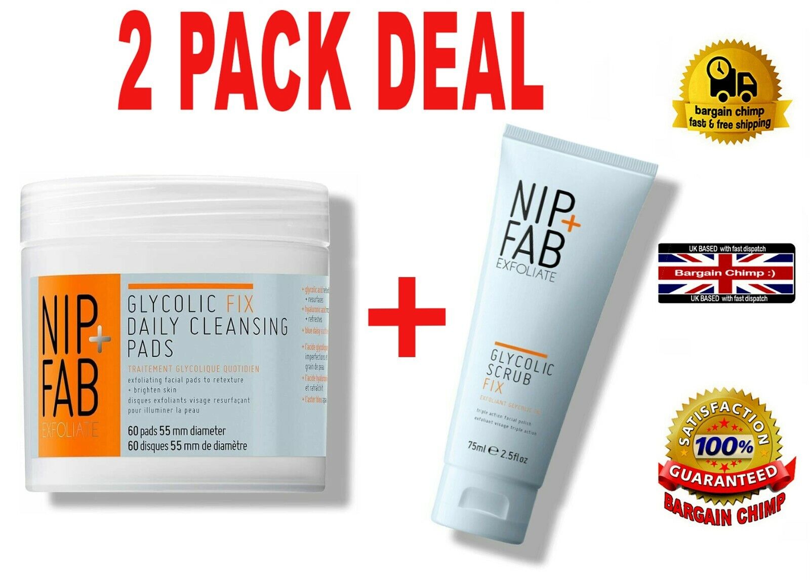 NIP and FAB - Glycolic Fix Cleansing / Exfoliating Facial Pads & scrub Fix Deal!