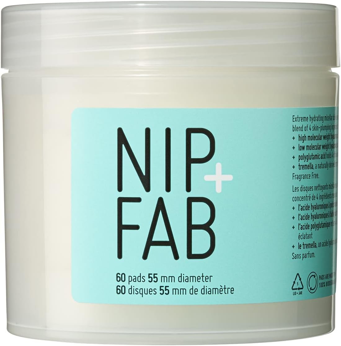 Nip + Fab Hyaluronic Acid Fix Extreme 4 Micellar Cleansing Pads for Face, Light