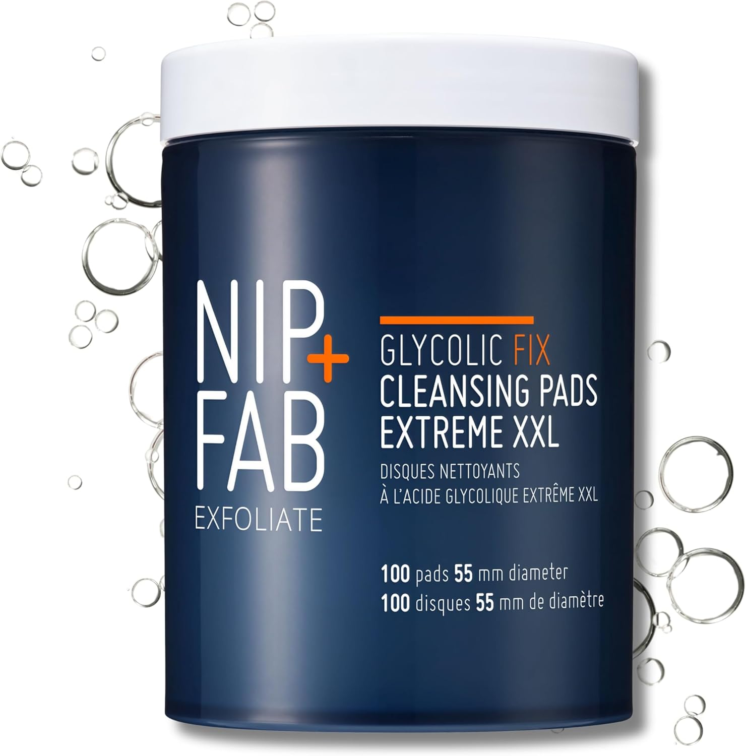 NIP + FAB Glycolic Fix Night Pads Extreme XXL – 5% Glycolic Acid Exfoliating Facial Pads with Salicylic Acid (BHA) & Lactic Acid for Resurfacing, Pore Clearing & Glowing Skin, 100 Pads