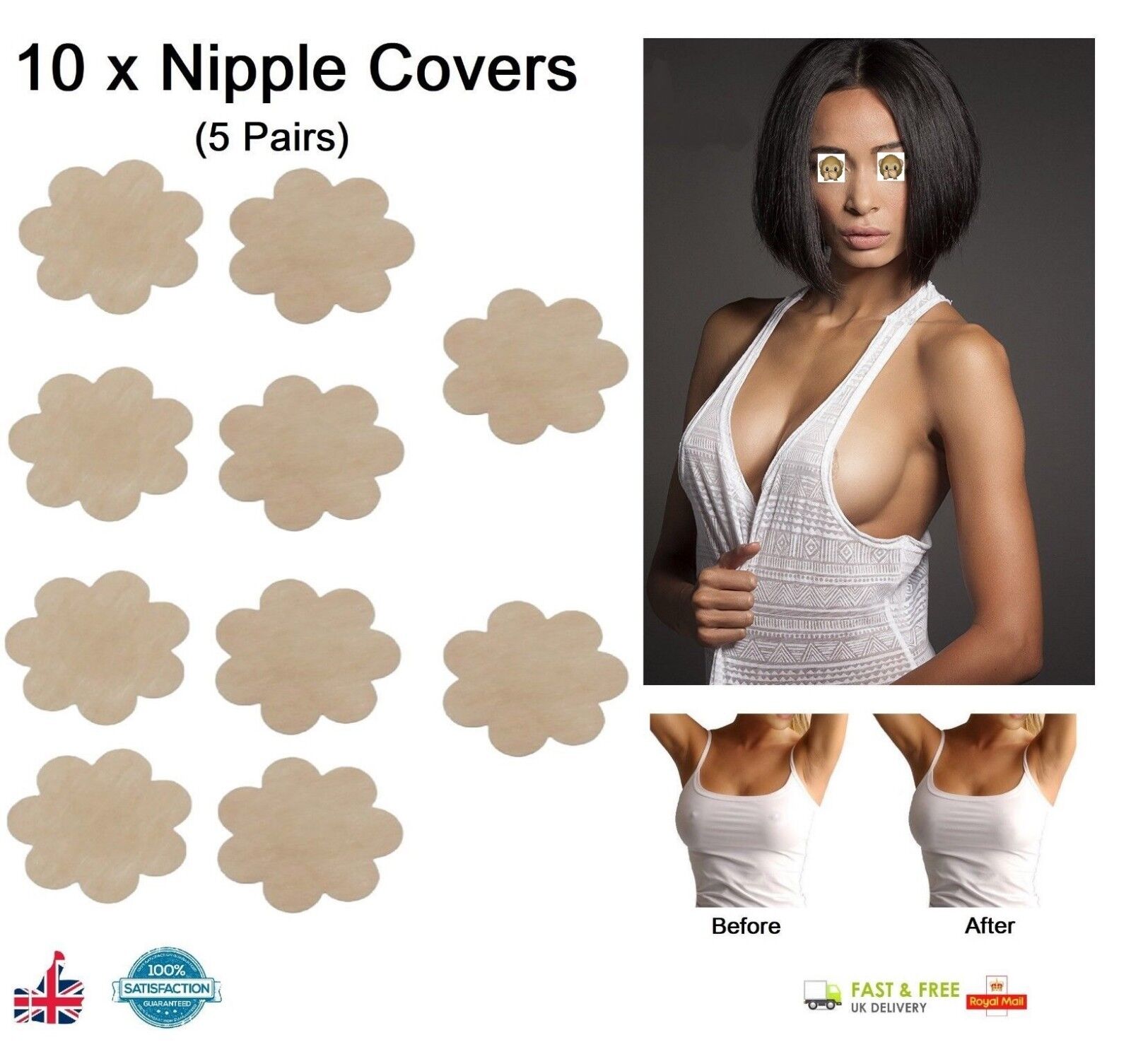 ADHESIVE NIPPLE COVERS Modesty Pads Bra Less Nude Flower Shaped 10 Pairs UK