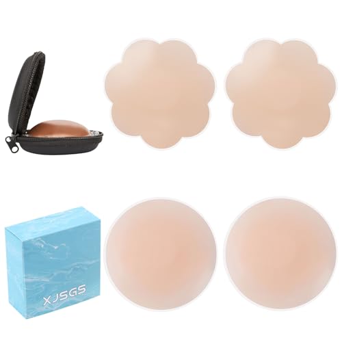 XJSGS Nipple Covers,Nipple Pasties Invisible,Silicone Nipple Cover Reusable Adhesive Nipple Stickers(2pairs)