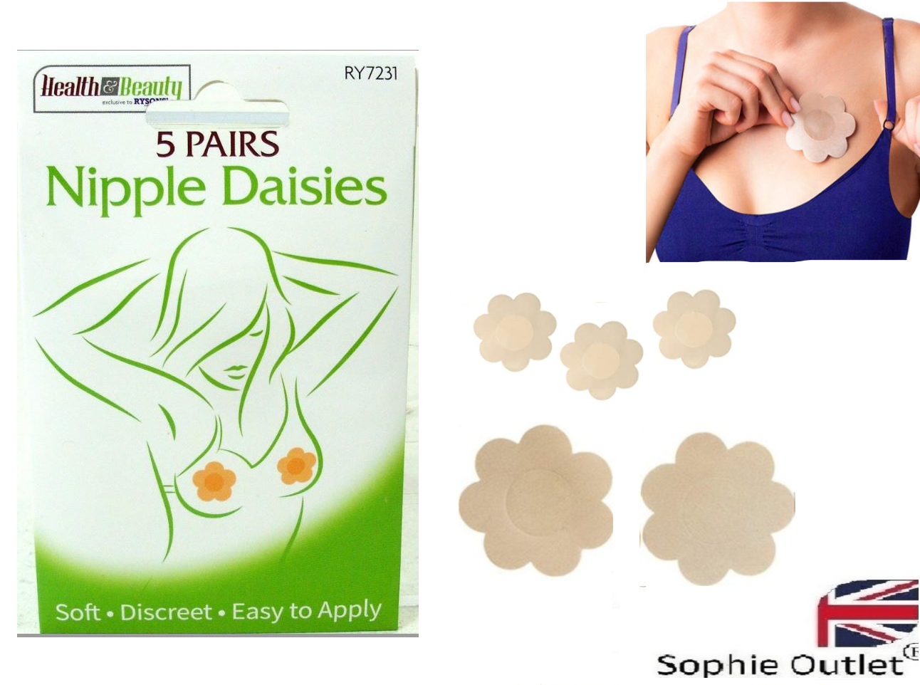ADHESIVE NIPPLE COVERS Flower Shaped Pads Bra modesty Less Nude 5 Pairs UK