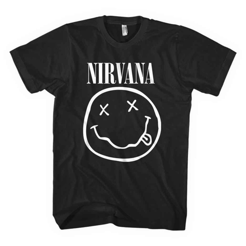 (M) Nirvana T Shirt White Smiley Band Logo nevermind new Official Mens Black
