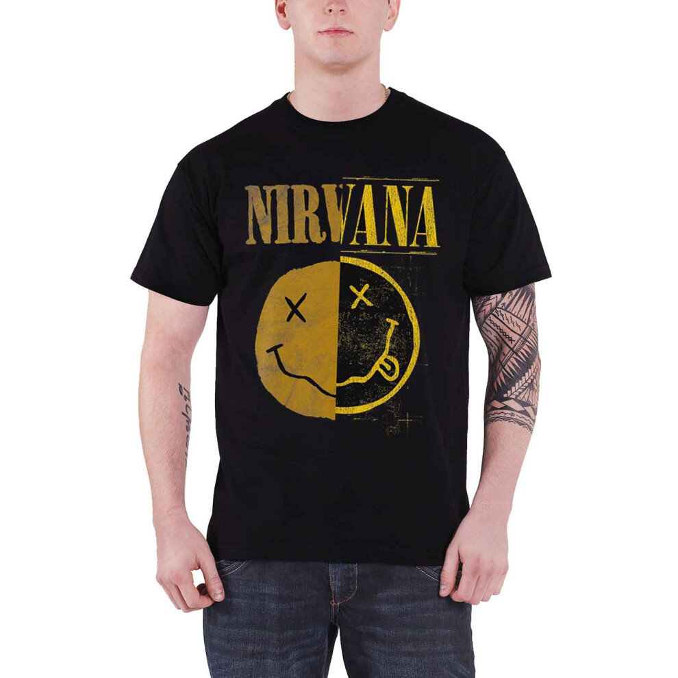 (XL, Black) Nirvana T Shirt Spliced Face Band Log Nevermind new Official Mens Black