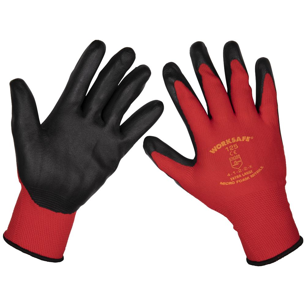 Sealey Worksafe Flexi Grip Nitrile Foam Palm Gloves Red / Black XL Pack of 12
