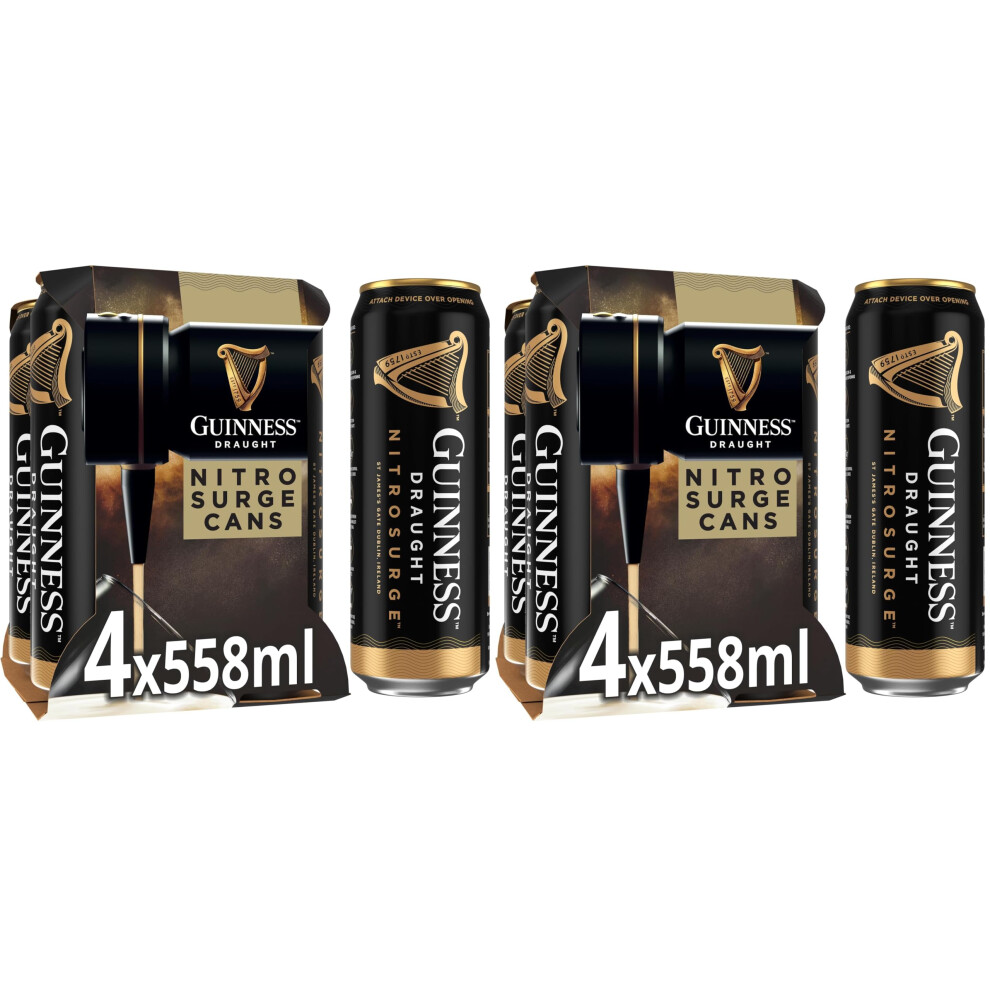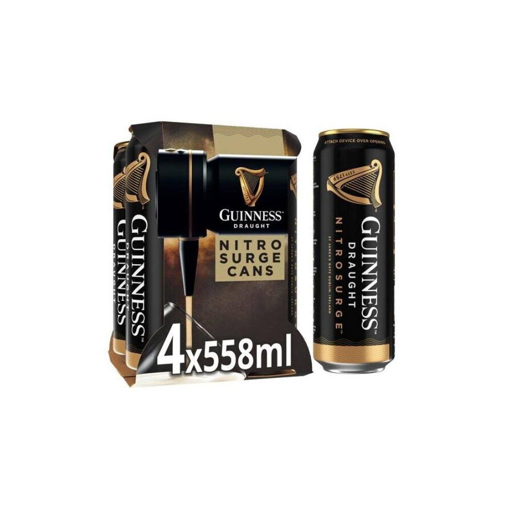 Guinness Draught | Nitrosurge | Stout Beer | 4.1% vol | 4x558ml | Perfect Pub Pour at Home | Beer Cans | Device Sold Separately | Ideal for Festive G
