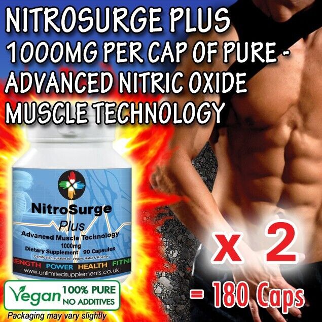 NITRO SURG -OXIDE STRONGEST MUSCLE GROWTH 1000MG 90 Caps 1200MG L-ARGININE AAKG