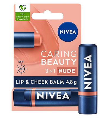 NIVEA Caring Beauty Nude Lip Balm SPF30 (4.8g), 3-in-1 Buttery Lip and Cheek Tint, Rich Colour and 24H Moisturisation with SPF 30 Protection