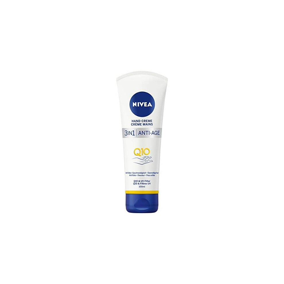 NIVEA 3in1 Q10 Anti-Age Care Hand Cream (100ml), Moisturising Hand Cream Reduces the Appearance of Wrinkles with Q10 and UV Filters, NIVEA Hand Cream for 24 Hour Moisture
