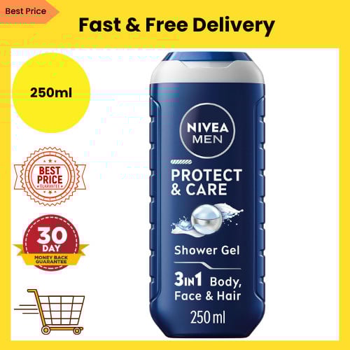 NIVEA MEN Protect & Care Shower Gel (250 Ml), Moisturising 3-In-1 Body Wash for