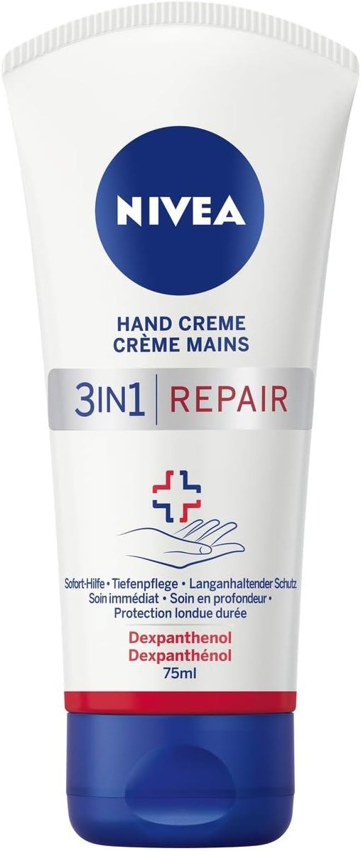 NIVEA 3-in-1 hand cream (75 ml), rich skin with dexpanthenol for intensive care, care very dry and cracked hands