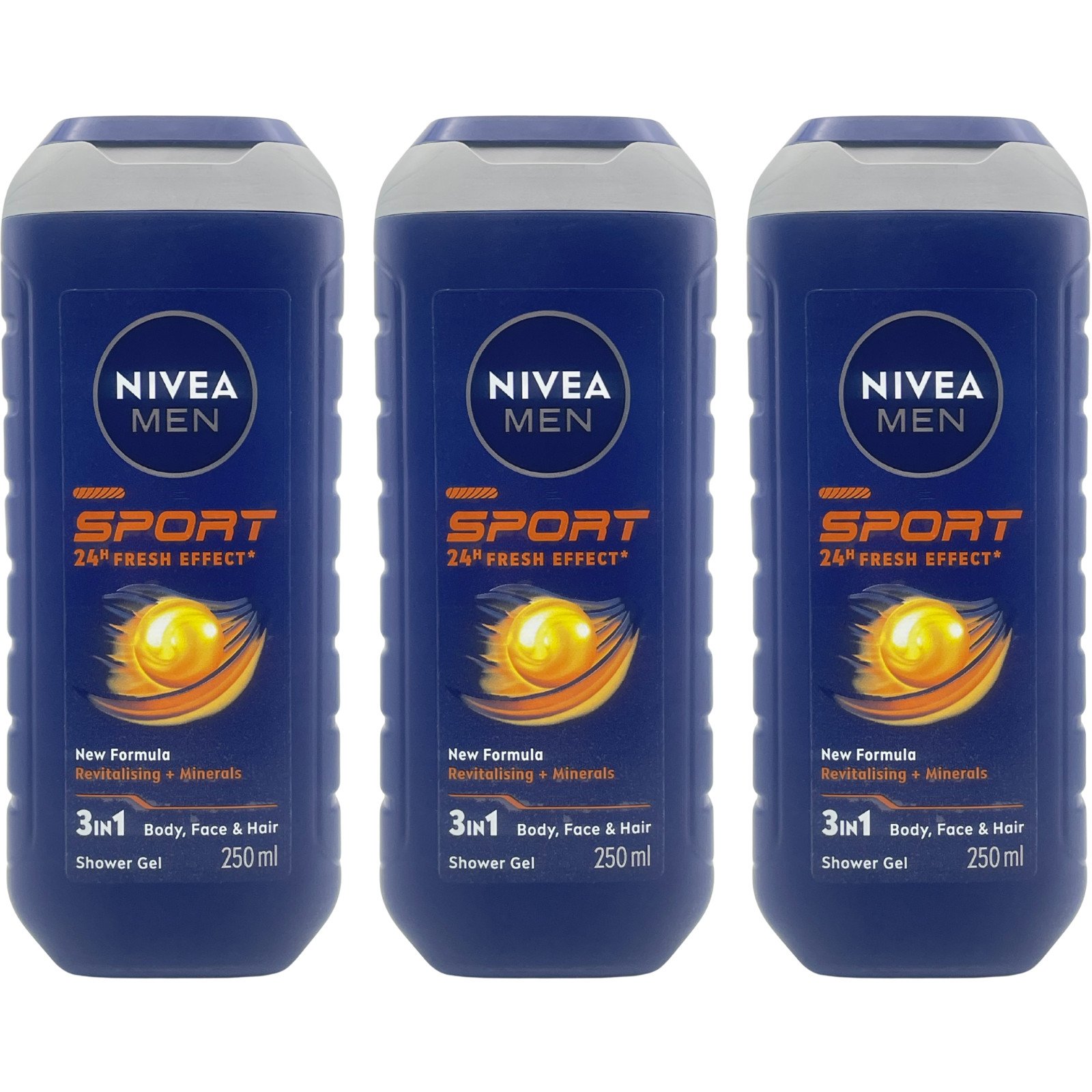 NIVEA MEN Sport 3-in-1 Shower Gel 250ml - Body, Face & Hair - Pack of 3