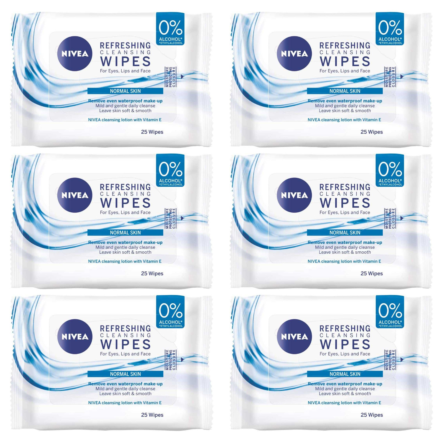 NIVEA 3in1 Sensitive Cleansing Wipes (25 Sheets), Plant-Based Makeup Remover Sheets, Face Wipes for Sensitive Skin, Gentle yet Effective Makeup Removal (Pack of 6)