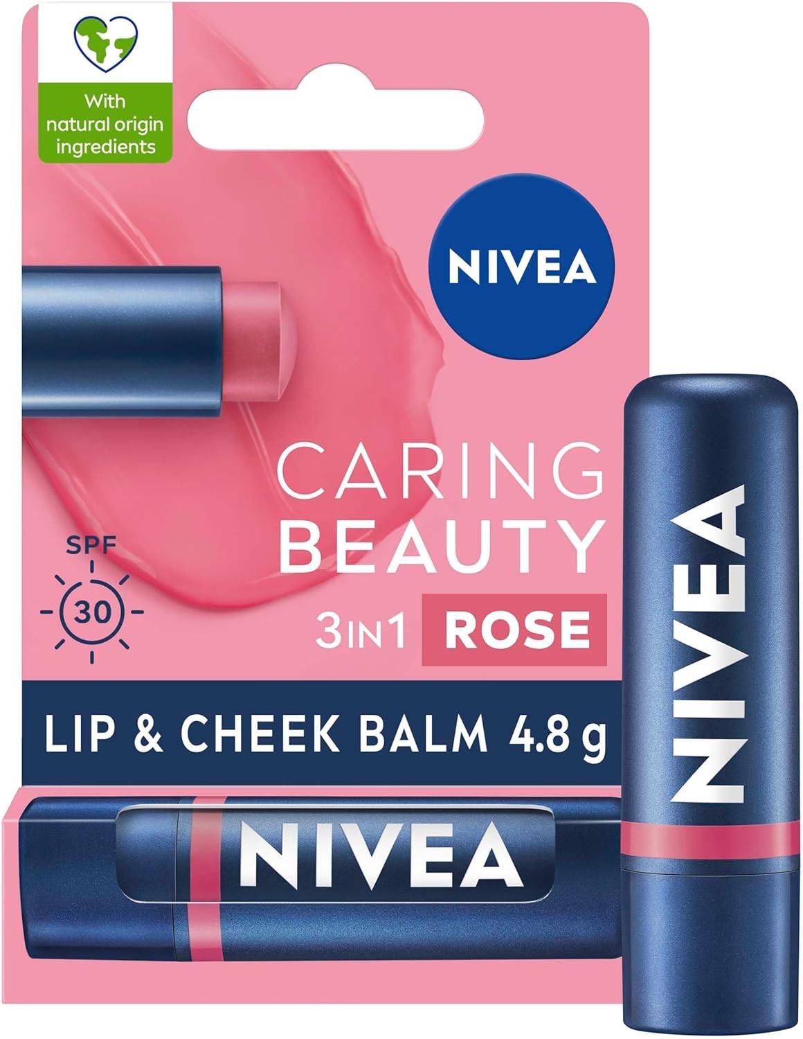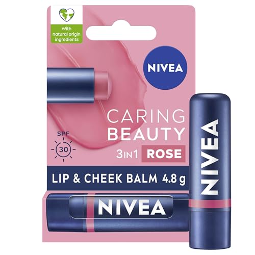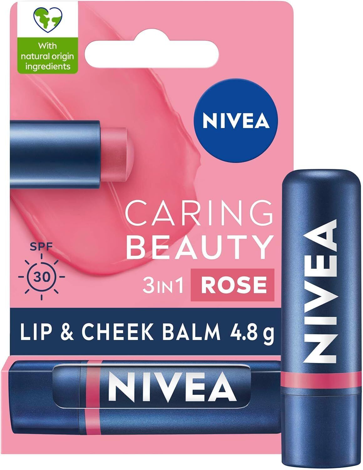 NIVEA Caring Beauty Rose Nude Lip Balm SPF30 (4.8g), 3-in-1 Buttery Lip and Cheek Tint, Rich Colour and 24H Moisturisation with SPF 30 Protection
