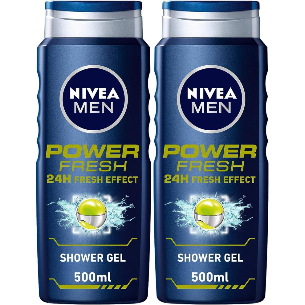 NIVEA MEN Power Fresh 24h Fresh Effect Citrus Scent 3in1 Shower Gel 500ml Pack Of 2 |Body Cleanser |Refreshed & Energized |Long-lasting Freshness