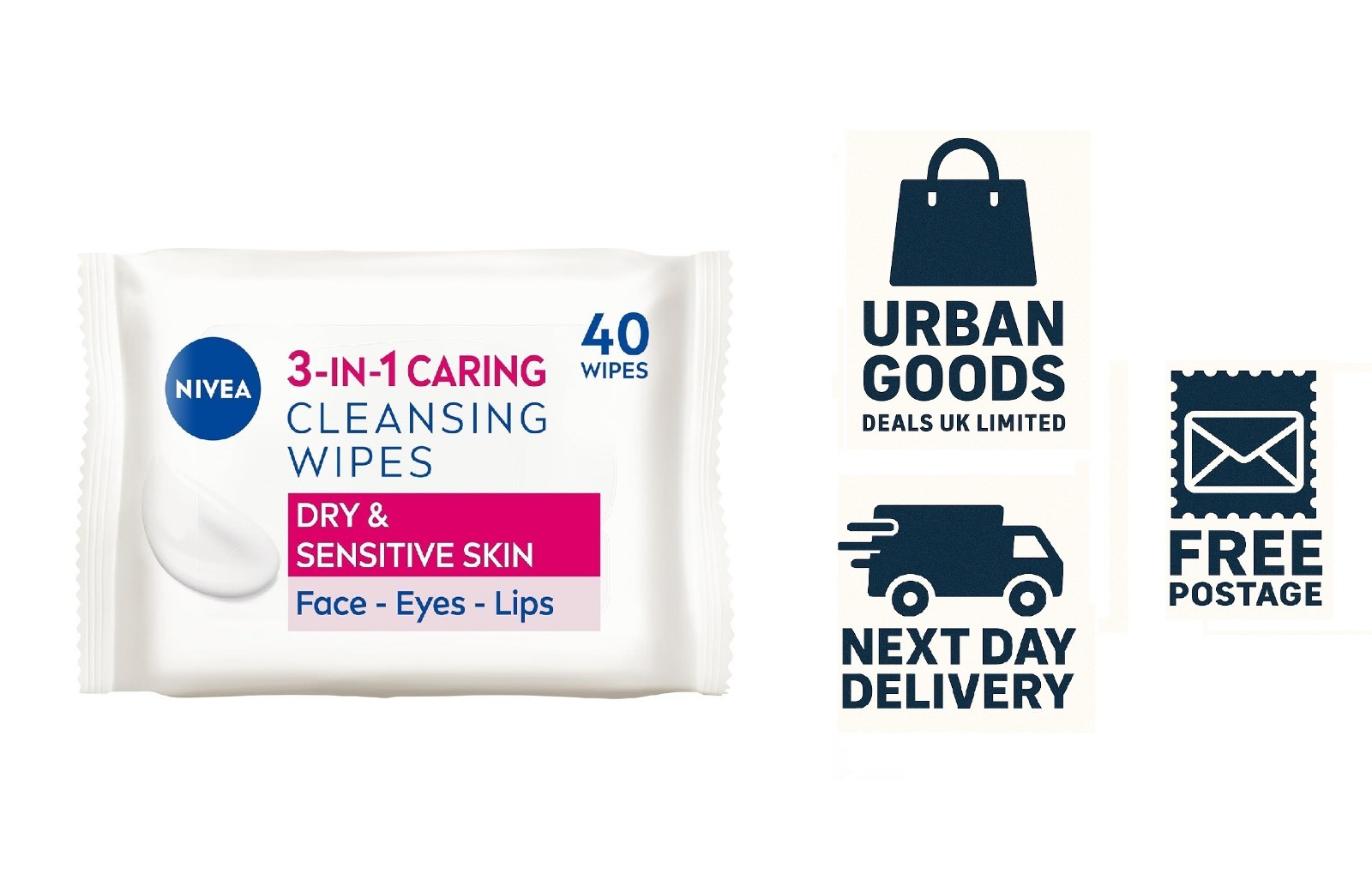 5 x NIVEA 3-in-1 CARING Cleansing Wipes for Dry Skin (40 per pack)