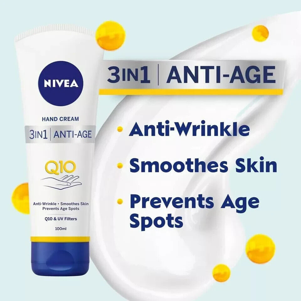 NIVEA 3in1 Q10 Anti-Age Care Hand Cream (100ml), 100 ml (Pack of 1)