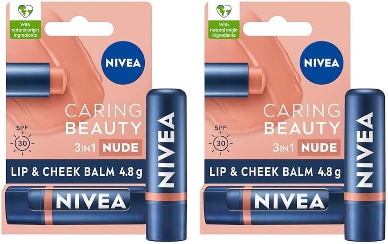 NIVEA Caring Beauty Nude Lip Balm SPF30 (4.8g), 3-in-1 Buttery Lip and Cheek Ti