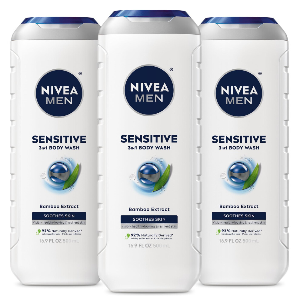 NIVEA Men Sensitive 3-in-1 Body Wash 16.9 Fluid Ounce (Pack of 3)