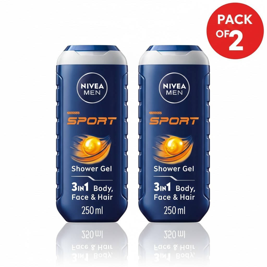 NIVEA MEN Sport 3-in-1 Shower Gel 250ml - Body, Face & Hair - Pack of 2