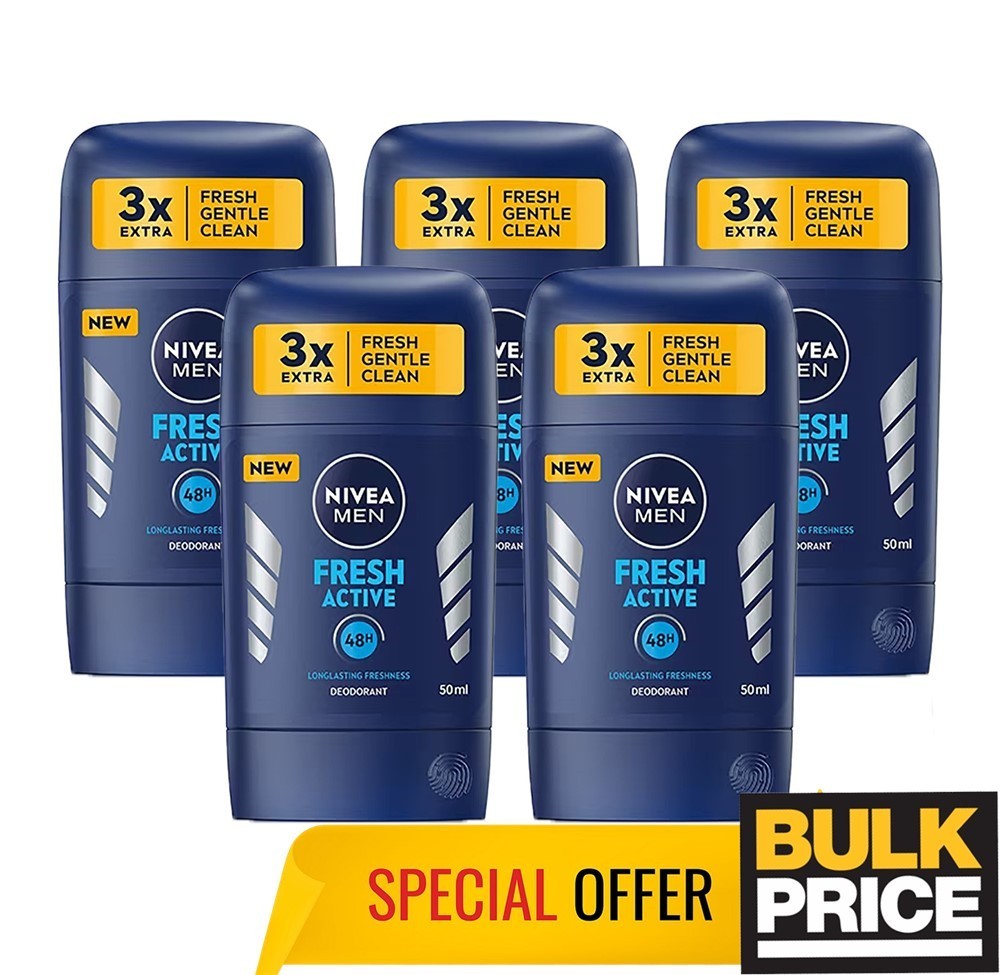 Nivea Men Fresh Active Stick Deodorant Alu-Free 48H Protection Quick Dry 5-Pack