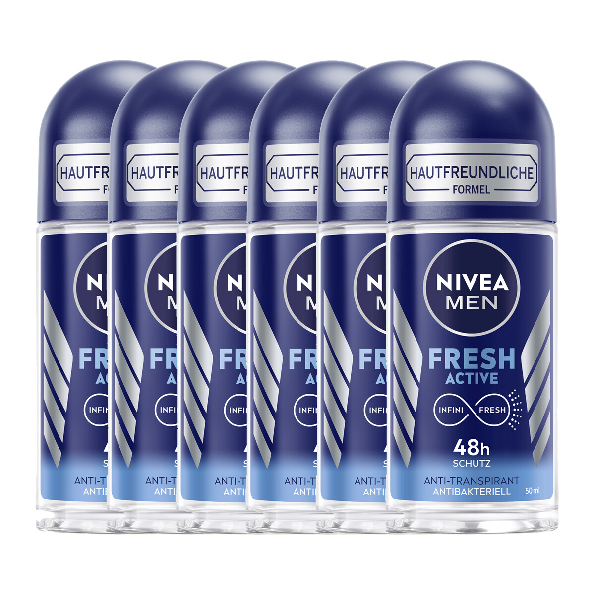 NIVEA Nivea Men Fresh Active Deodorant Spray 6 Pack (6 x 50 ml), Non-aluminium roller with Refreshing Formula, 48-Hour Protection