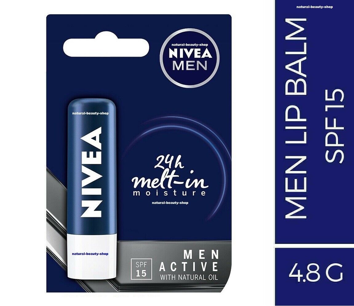 Nivea Men Active 24h Melt-in Moisture SPF15 Lip Balm Stick 4.8g, Natural Oil