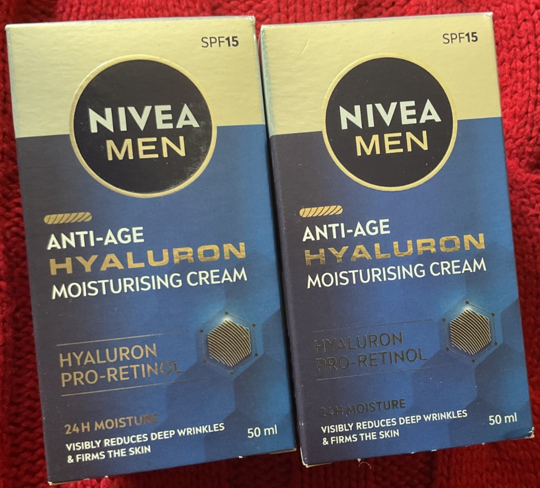 2 x NIVEA MEN Anti-Age Hyaluron SPF15 Moisturising Cream (50ml), Anti-Wrinkle