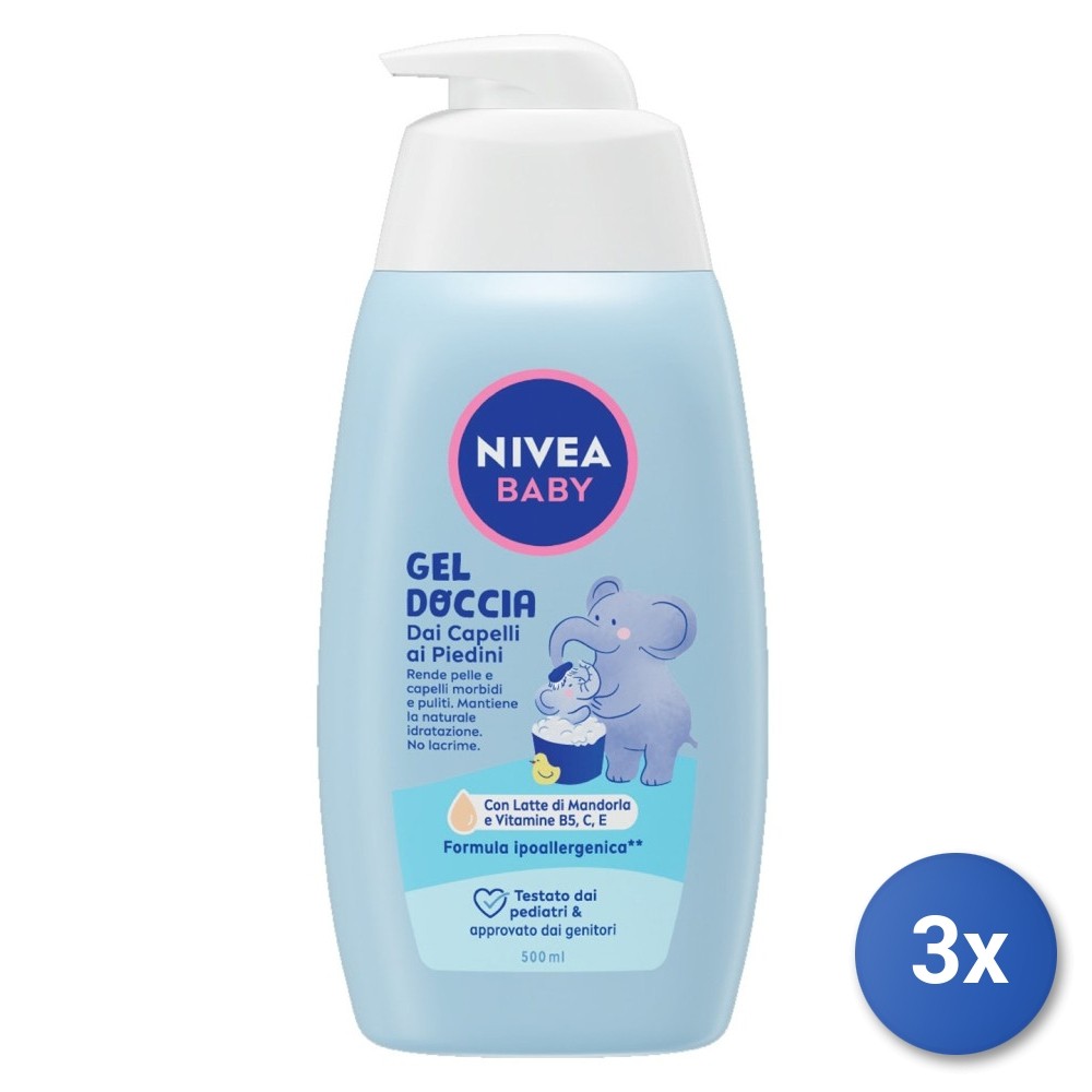 3X Nivea Baby 500 ML Shampoo + Body Dispenser 80512
