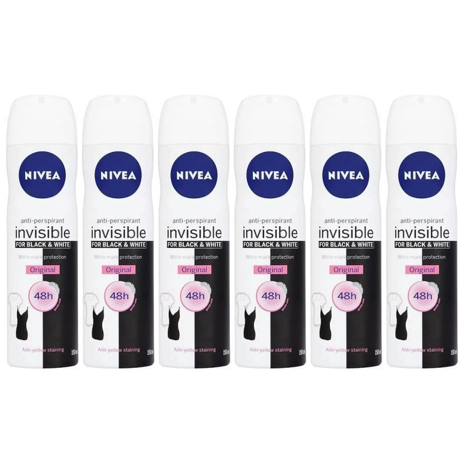 Nivea Anti-Perspirant Deodorant Black & White Invisible Original Women 150ml x 6