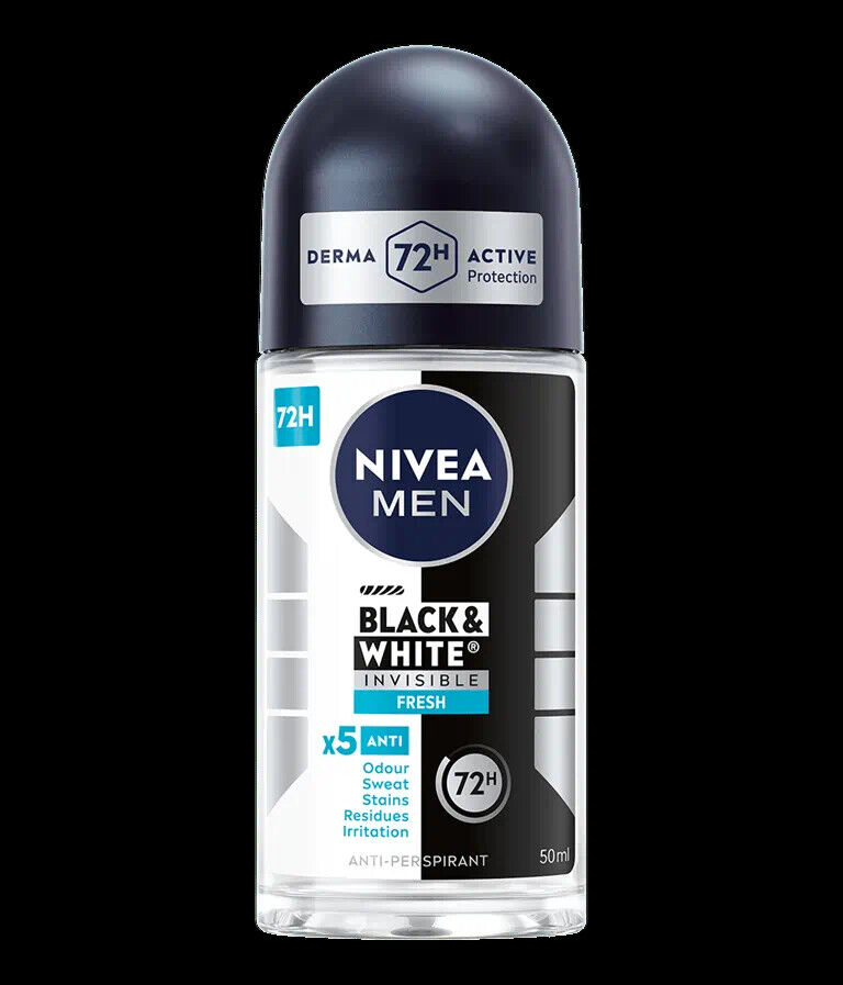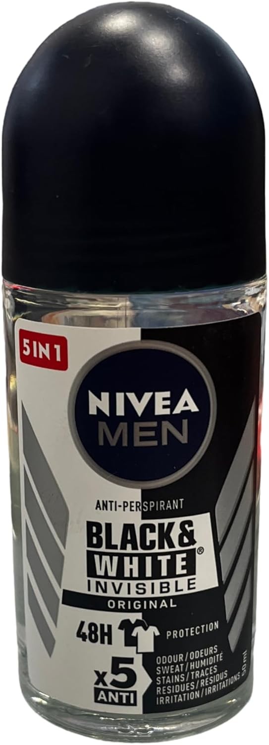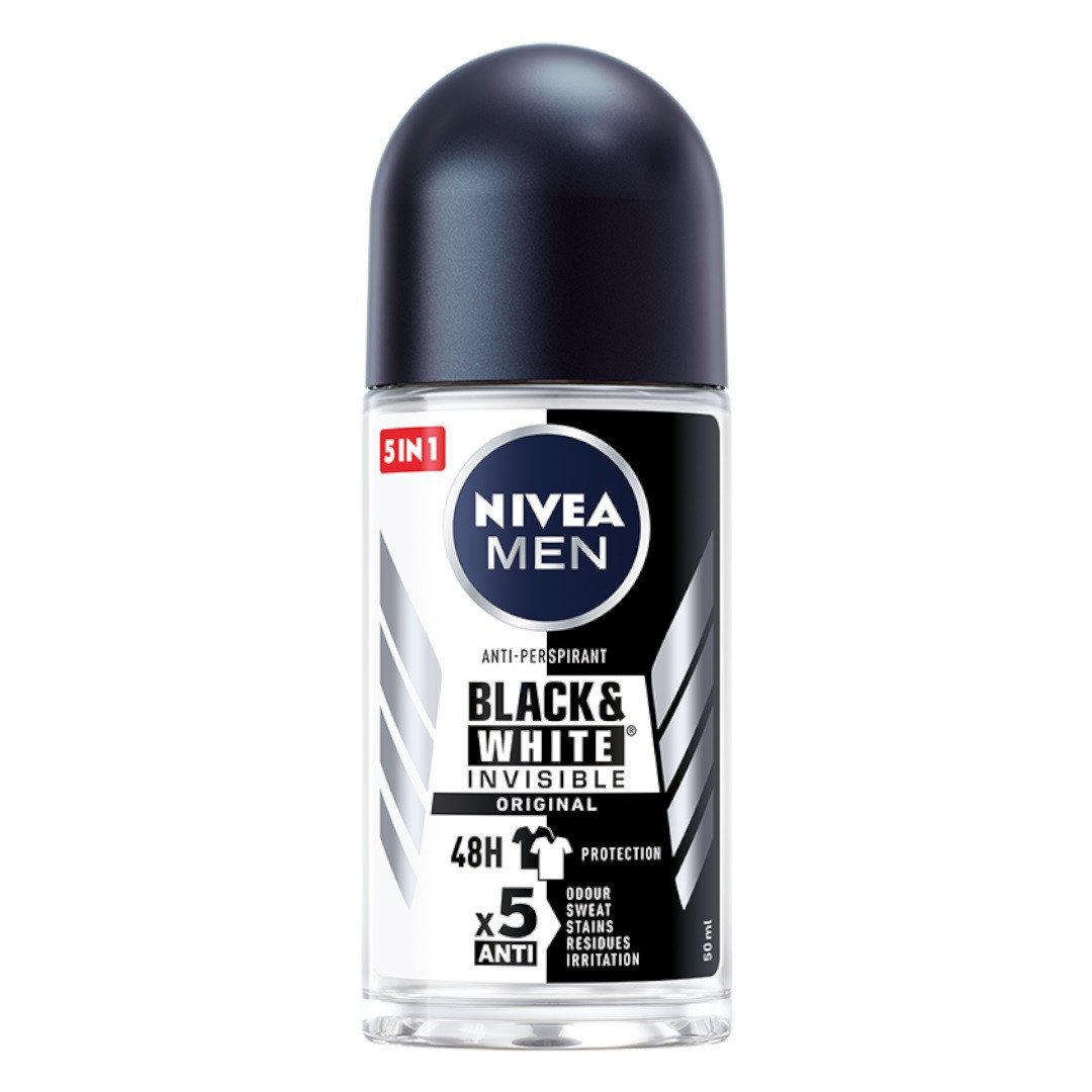 NIVEA MEN Black & White Original Anti-Perspirant Roll On (50ml), 72hr Anti-Sweat Roll On Deodorant for Men, No Stains on Black and White Clothes