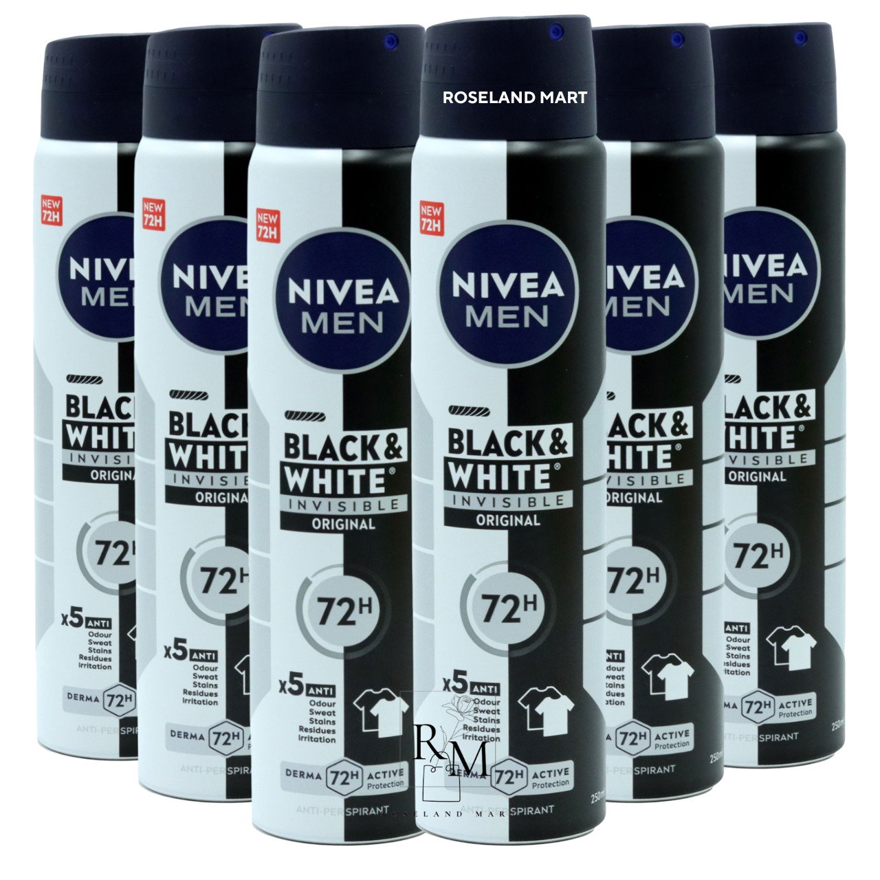 6 x 250ml Nivea Antiperspirant Deodorant Invisible Black & White Original Men